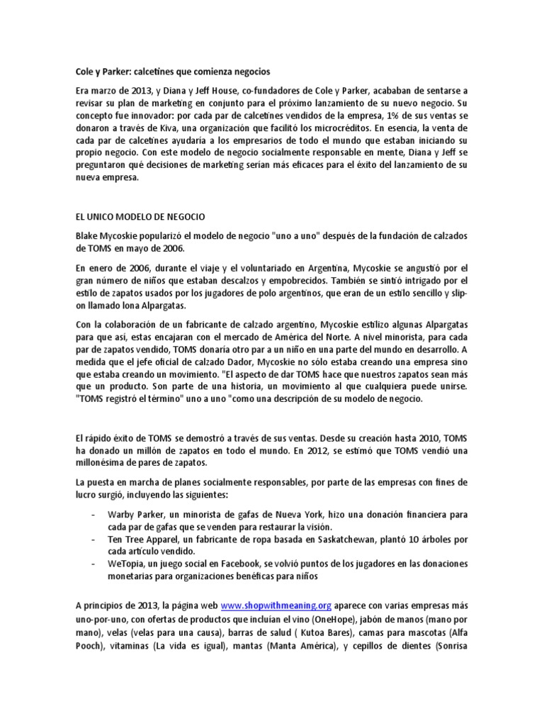 grupo target de consumidores? Qué características deben tener los clientes de Cole and Parker?