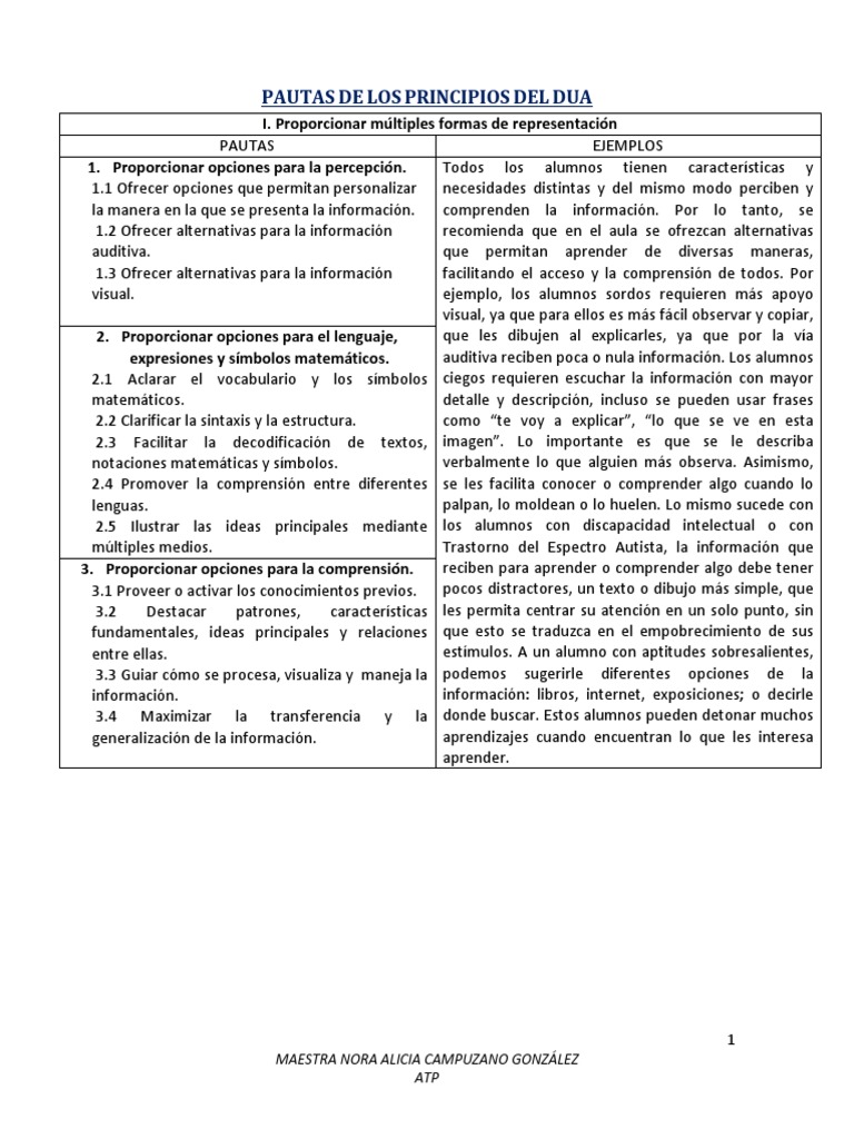 PAUTAS DE LOS PRINCIPIOS DEL DUA