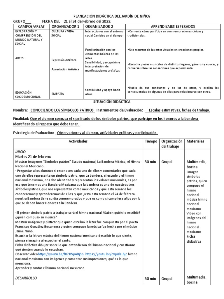 PLANEACIÓN DIDÁCTICA DEL JARDÍN DE NIÑOS