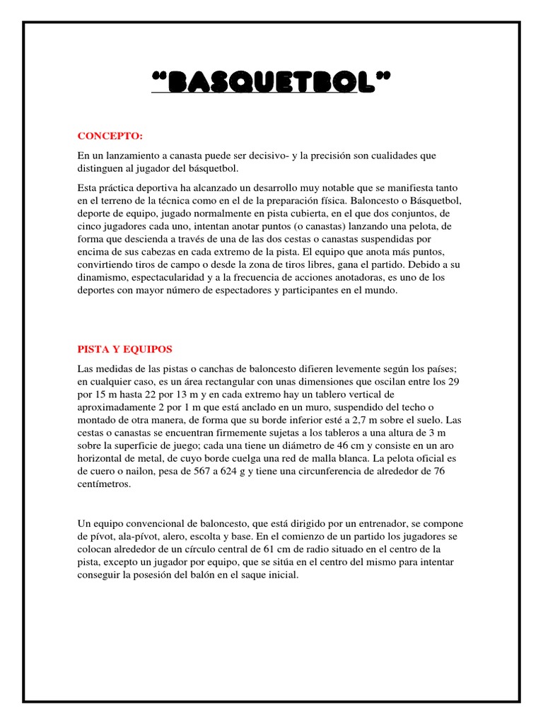 en el terreno de la técnica como en el de la preparación física. Baloncesto o Básquetbol,