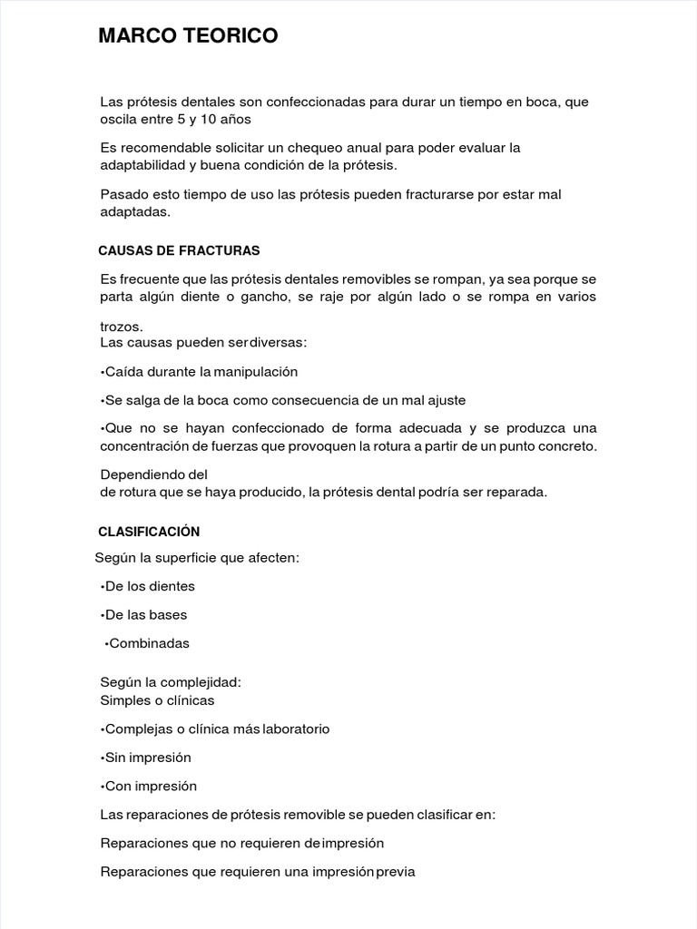 Las reparaciones de prótesis removible se pueden clasificar en: