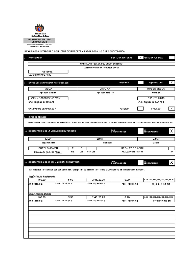 2. DATOS DEL VERIFICADOR RESPONSABLE Arquitecto Ingeniero Civil X