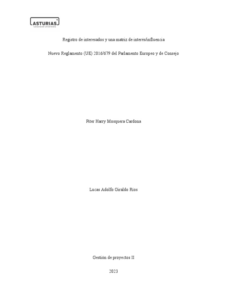 u., 2023) el registro de interesados es un documento que contiene la información de los