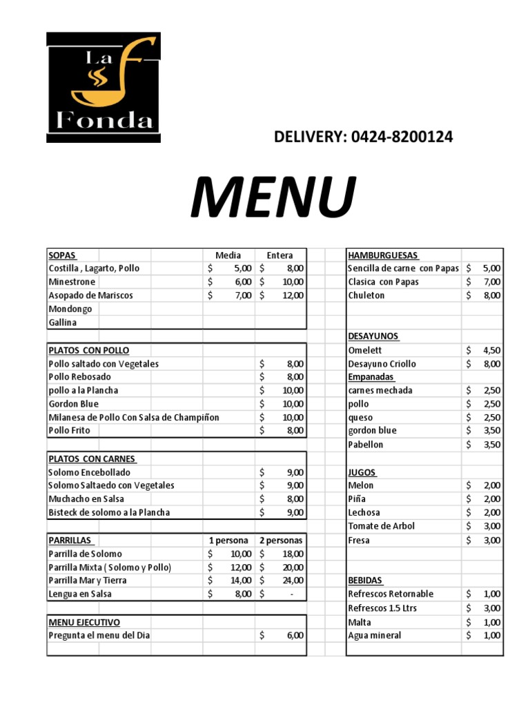MENU EJECUTIVO Malta $ 1,00