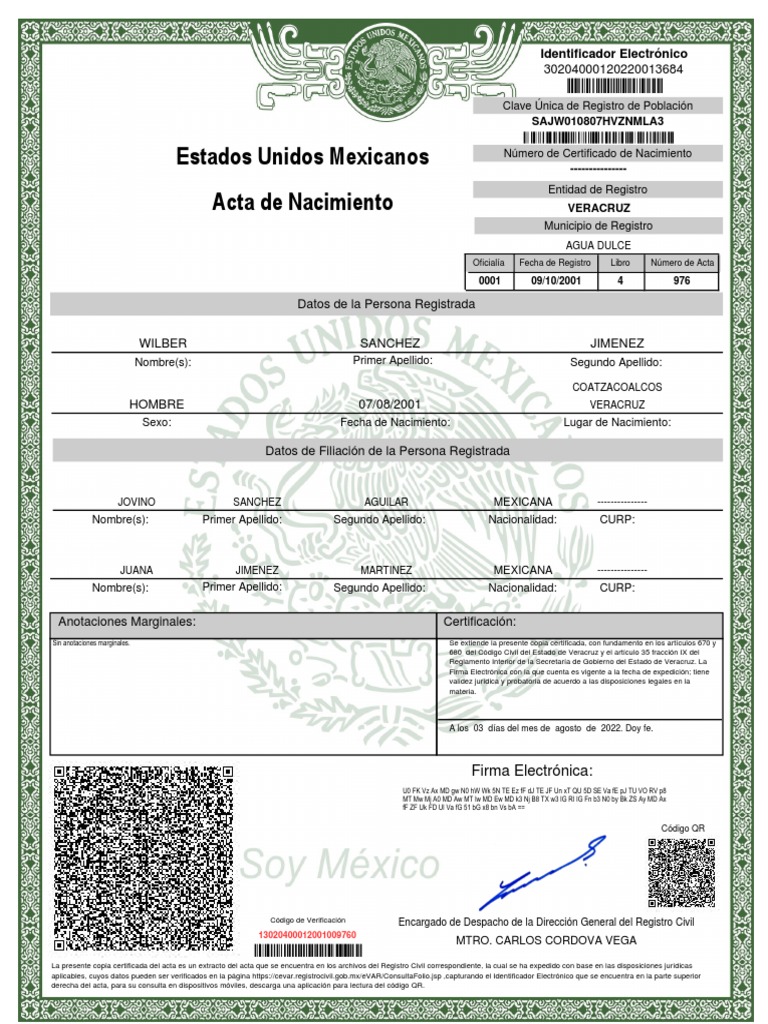 Acta de Nacimiento VERACRUZ