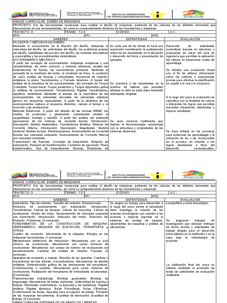UNIDAD CURRICULAR: DISEÑO DE MÁQUINAS