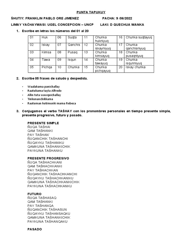 ŚHUTIY: FRANKLIN PABLO ORE JIMENEZ PACHA: 9 /06/2022