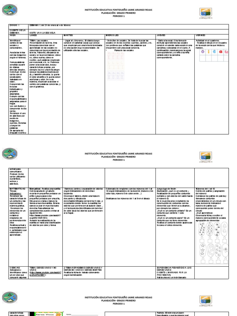 Planeación Primer Periodo Grado 1