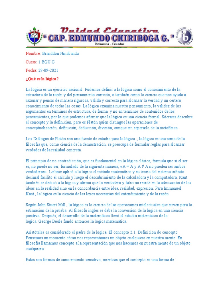 La lógica es un ejercicio racional. Podemos definir a la lógica como el conocimiento de la