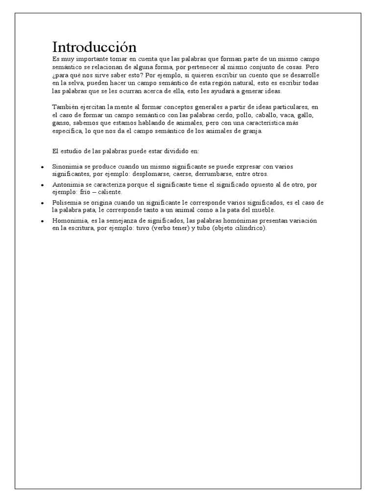 Es muy importante tomar en cuenta que las palabras que forman parte de un mismo campo