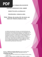 creatividad. Además de la lectura, se propone que las actividades del taller motiven a los estudiantes a