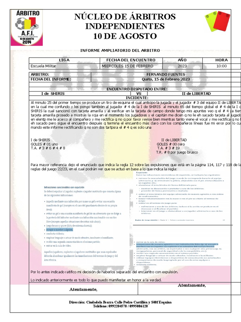 INFORME AMPLIATORIO DEL ARBITRO