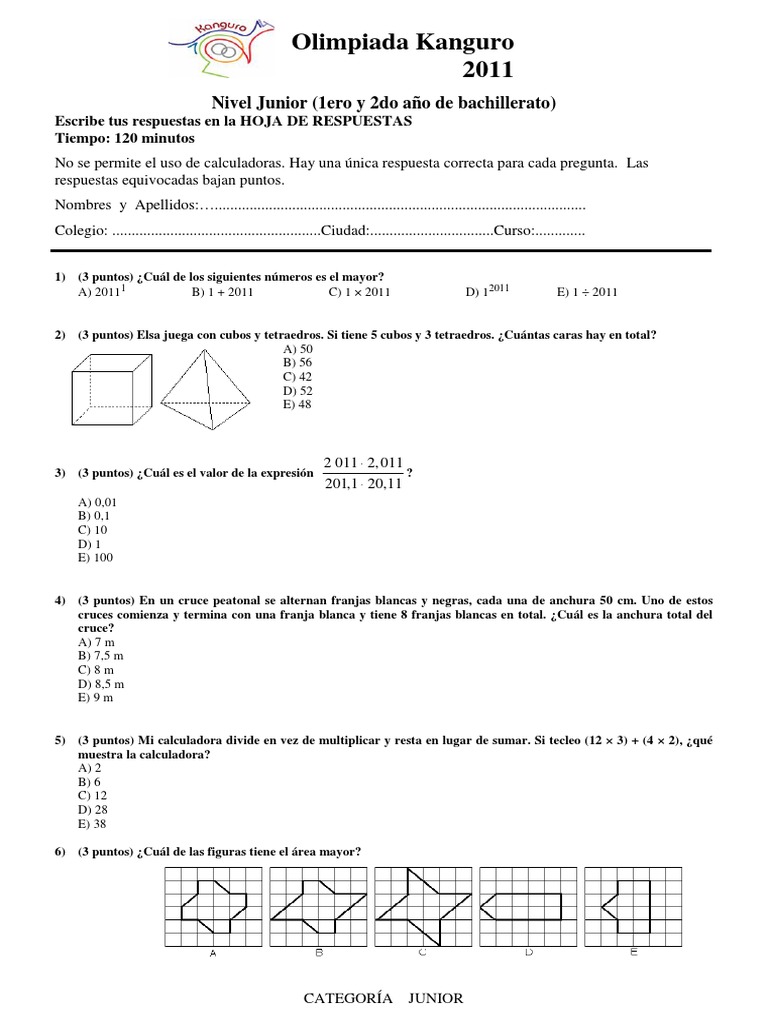 No se permite el uso de calculadoras. Hay una única respuesta correcta para cada pregunta. Las