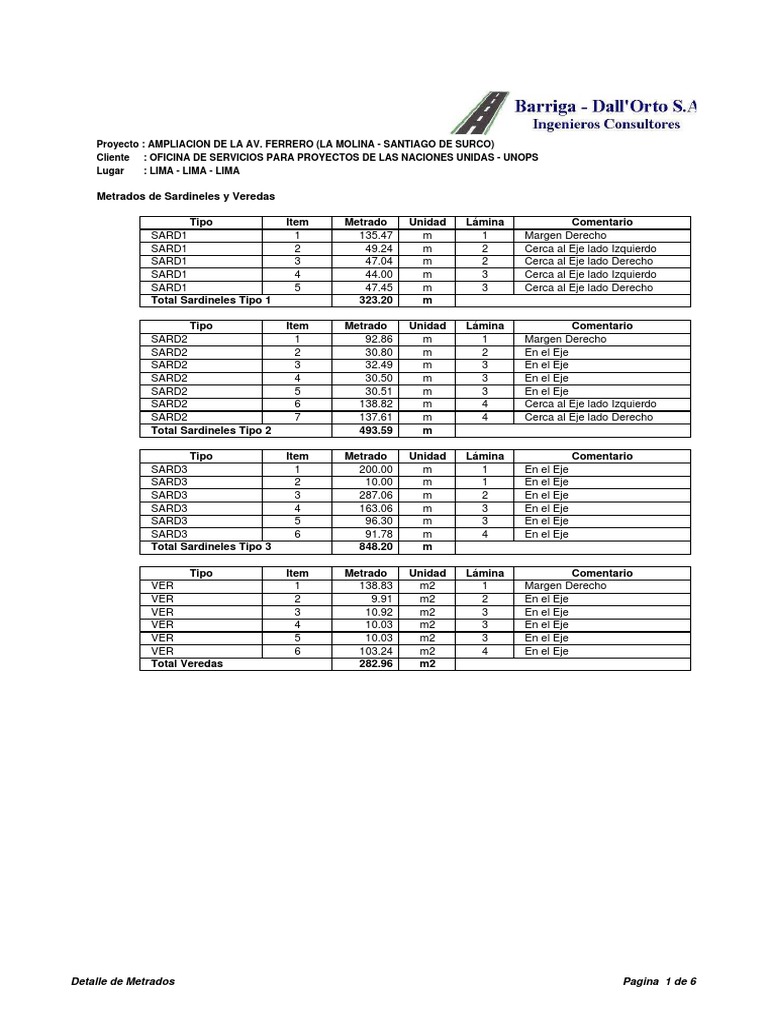 Proyecto : AMPLIACION DE LA AV. FERRERO (LA MOLINA - SANTIAGO DE SURCO)
