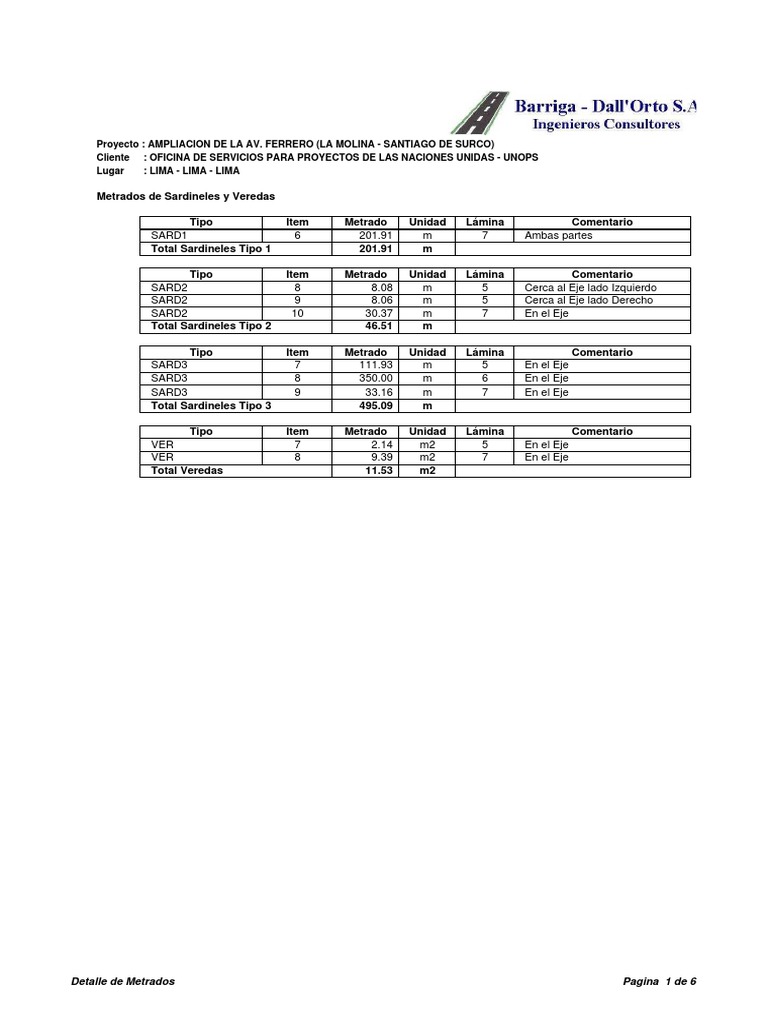 Detalle de Metrados Pagina 1 de 6