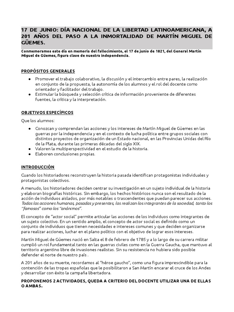 ● Conozcan y comprendan las acciones y los intereses de Martín Miguel de Güemes en las