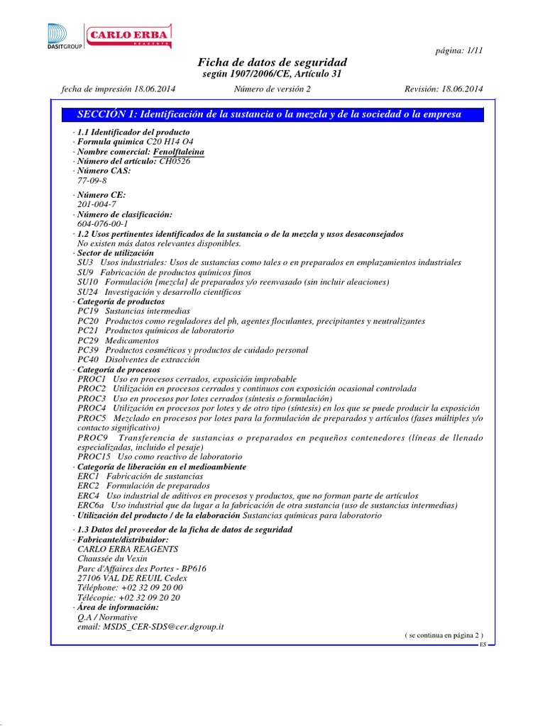 fecha de impresión 18.06.2014 Número de versión 2 Revisión: 18.06.2014