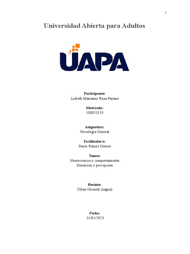 donde los temas a desarrollar son Neurociencia y comportamiento y Sensacion percepcion.