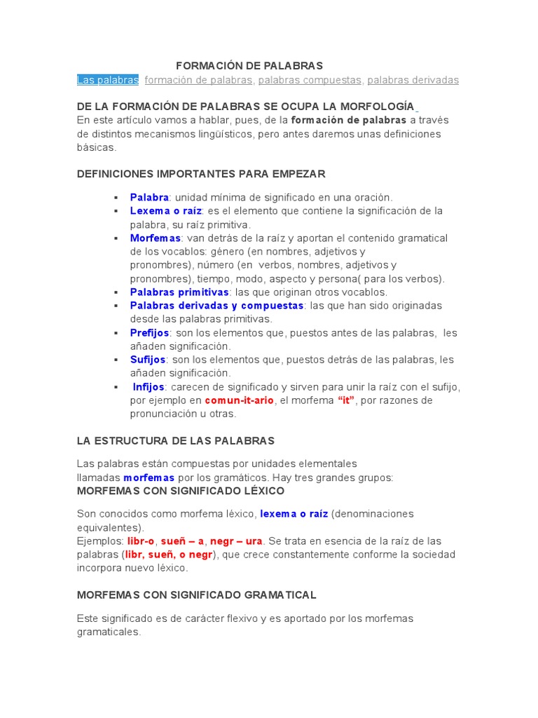 Las palabras formación de palabras, palabras compuestas, palabras derivadas