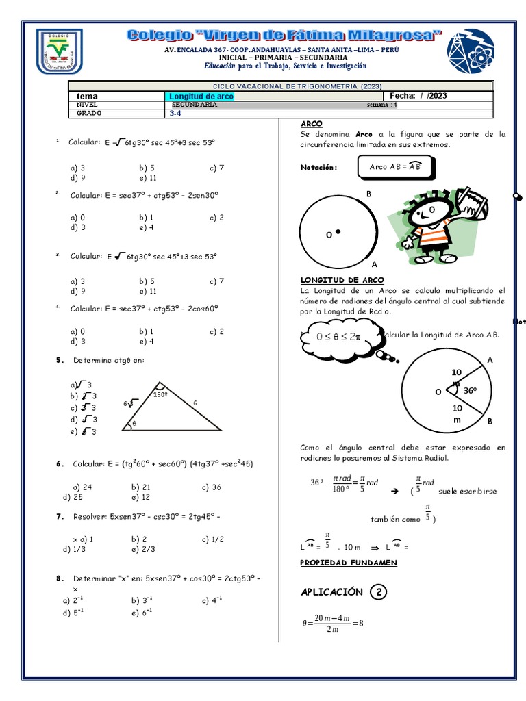 d) 9 e) 11 La Longitud de un Arco se calcula multiplicando el