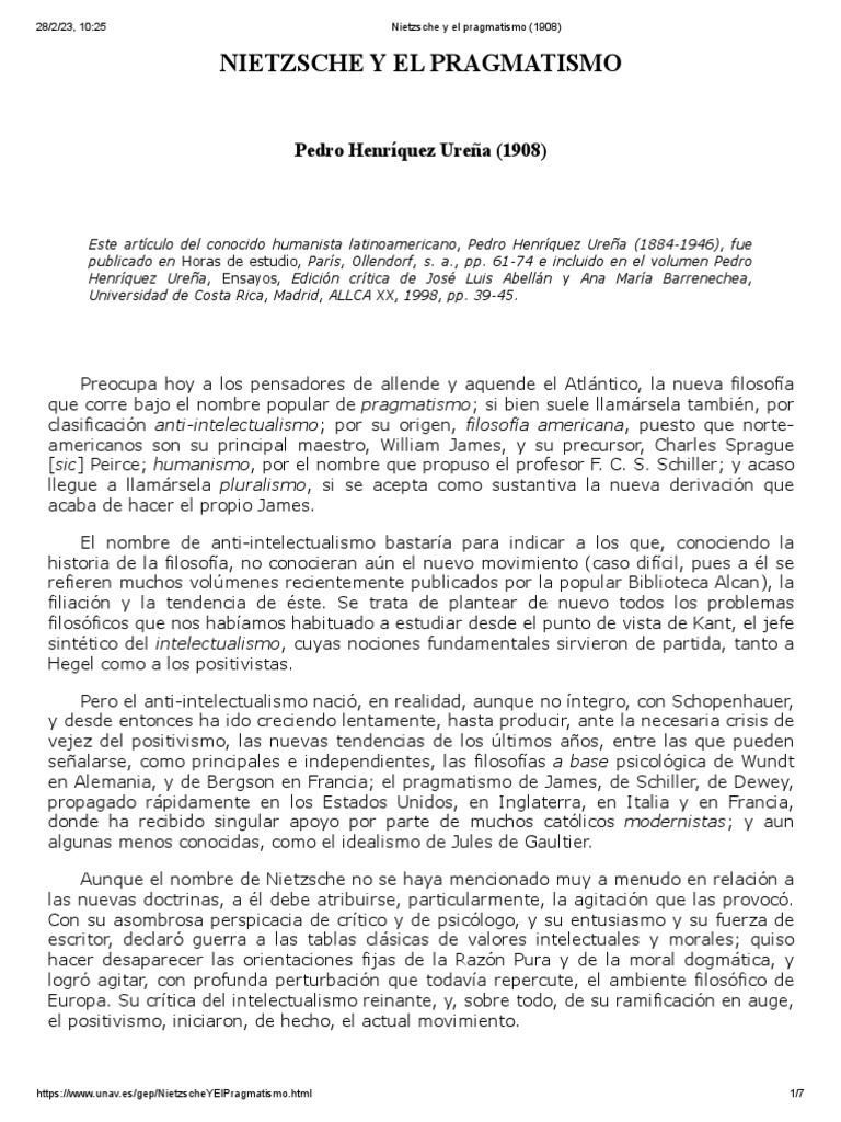 28/2/23, 10:25 Nietzsche y el pragmatismo (1908)