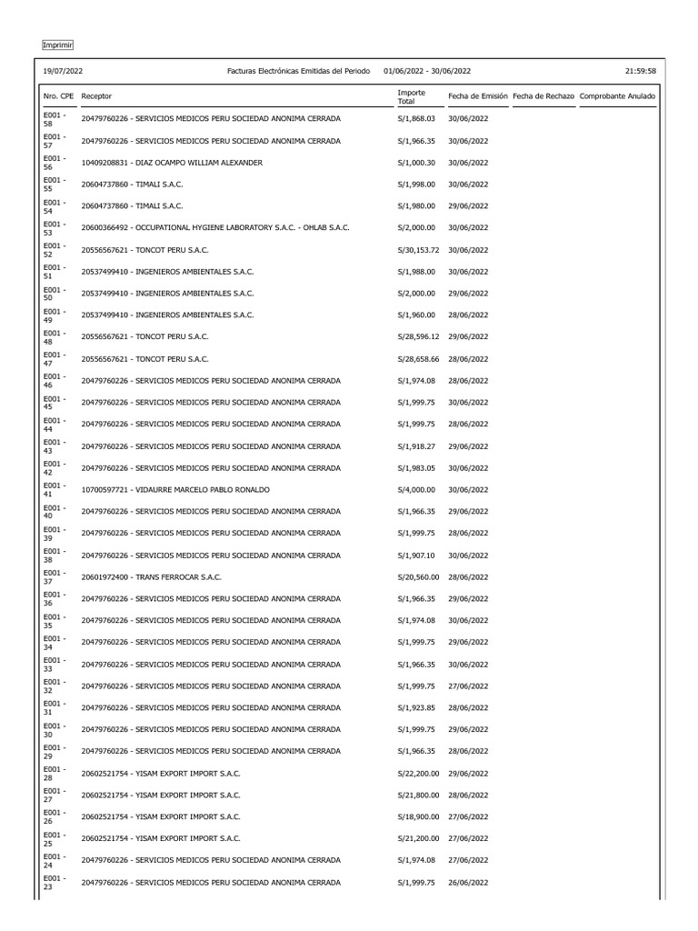 19/07/2022 Facturas Electrónicas Emitidas del Periodo 01/06/2022 - 30/06/2022 21:59:58
