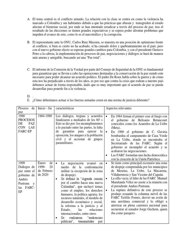 necesario para poder alcanzar un acuerdo político. El padre De Roux habla sobre la guerra y de cómo