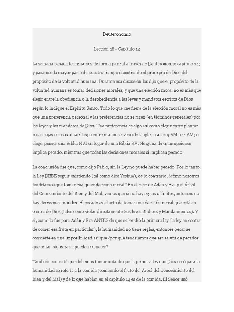 Deuteronomio 14, permítanme indicar algo del que soy inequívoco e inflexible acerca