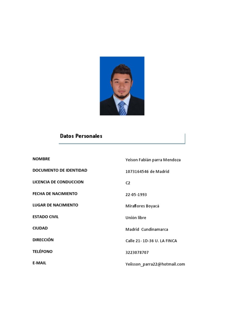 LUGAR DE NACIMIENTO Miraflores Boyacá