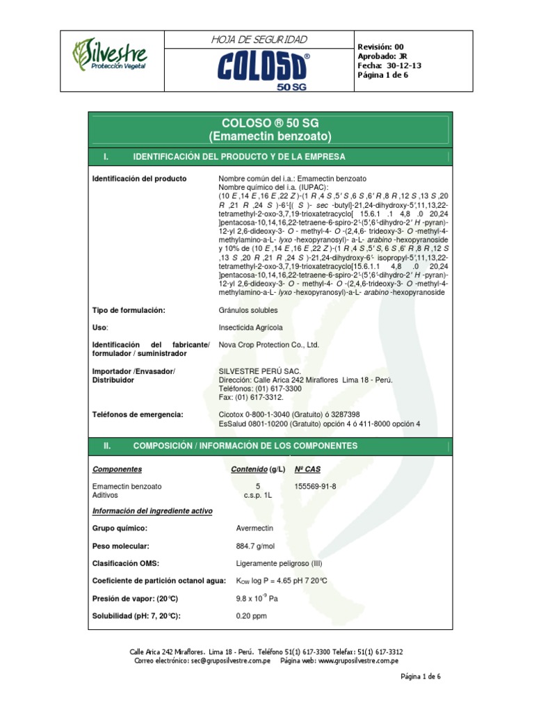 Identificación del producto Nombre común del i.a.: Emamectin benzoato