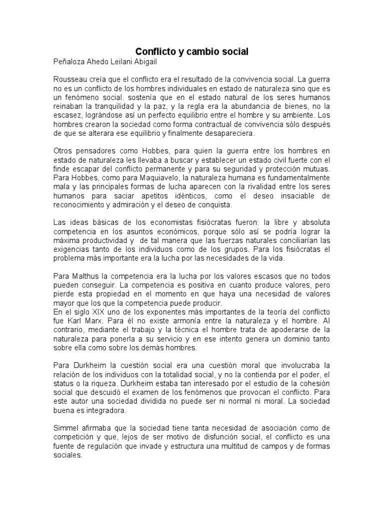 social que descuidó el examen de los fenómenos que provocan el conflicto. Para