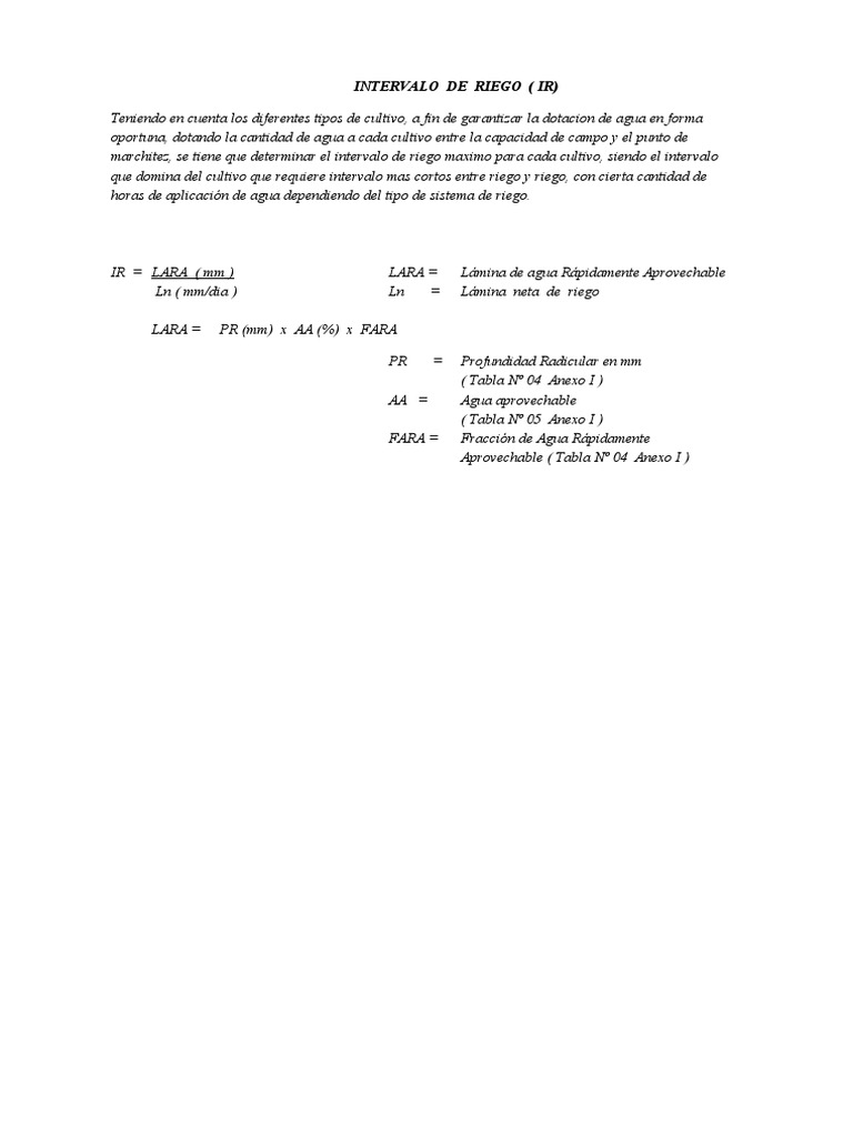 IR = LARA ( mm ) LARA = Lámina de agua Rápidamente Aprovechable