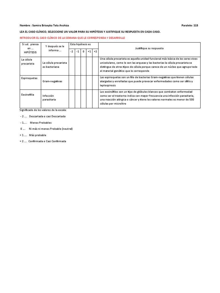 LEA EL CASO CLÍNICO, SELECCIONE UN VALOR PARA SU HIPÓTESIS Y JUSTIFIQUE SU RESPUESTA EN CADA CASO.