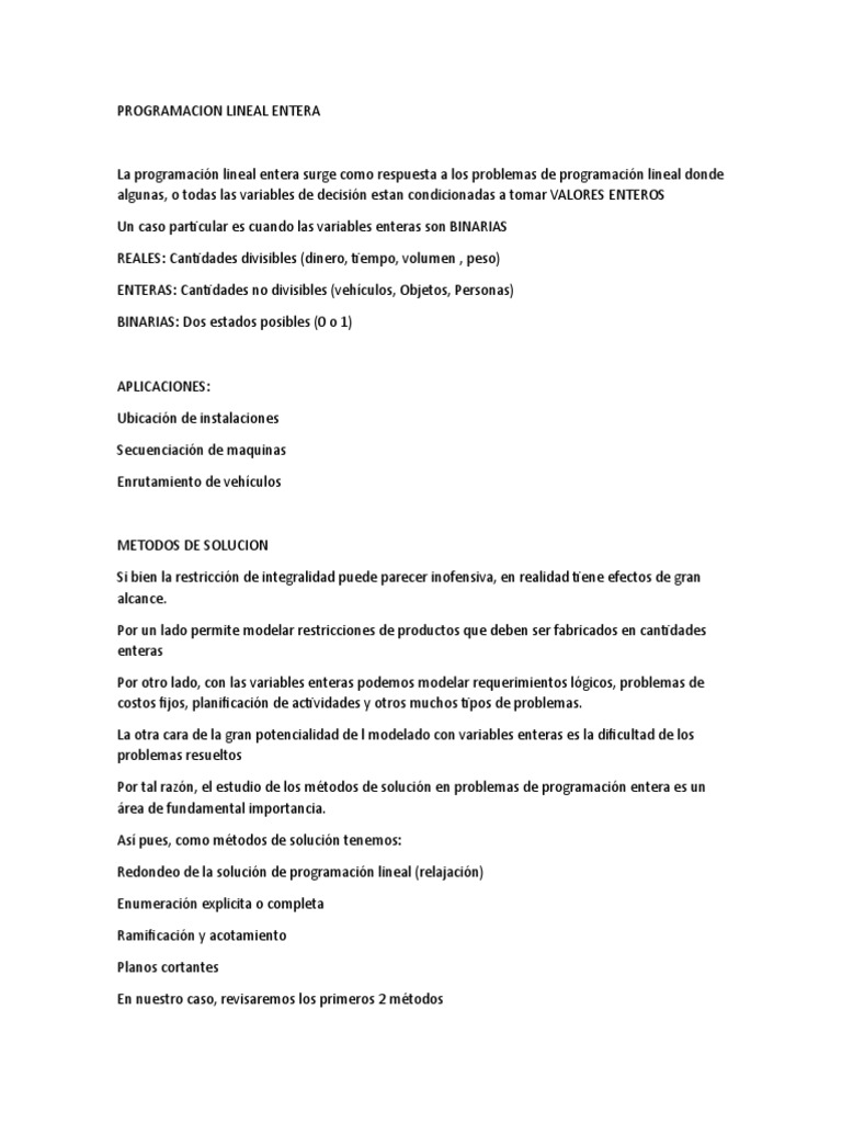 Por tal razón, el estudio de los métodos de solución en problemas de programación entera es un