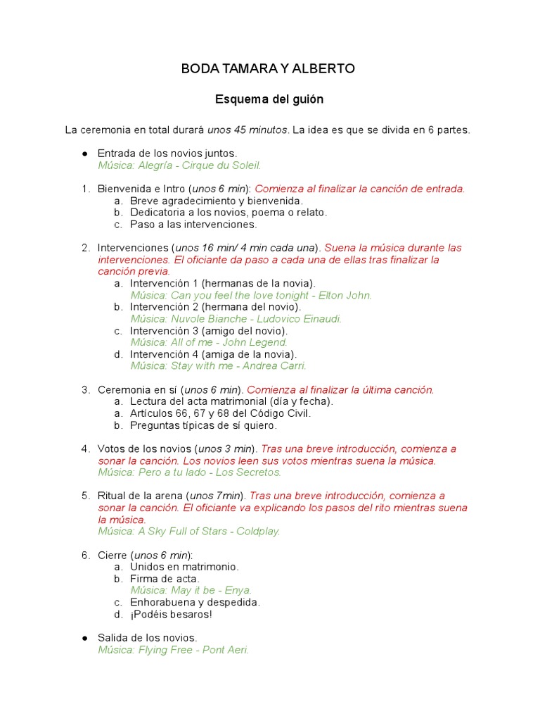 3. Ceremonia en sí (unos 6 min). Comienza al finalizar la última canción.