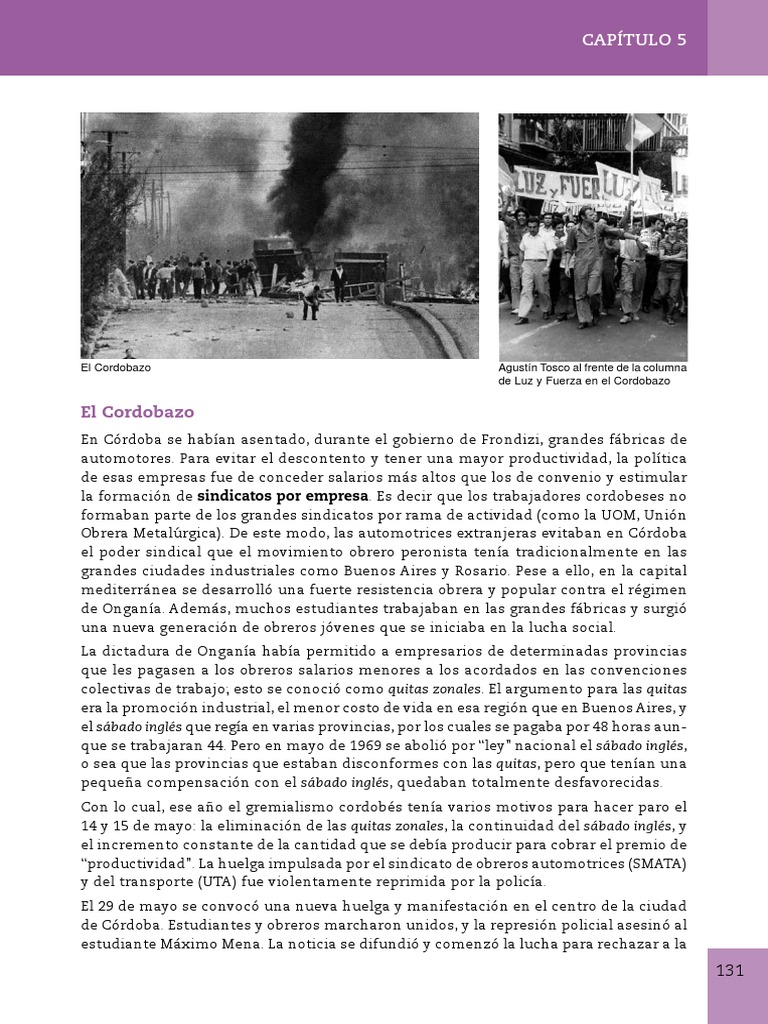 de Onganía. Además, muchos estudiantes trabajaban en las grandes fábricas y surgió