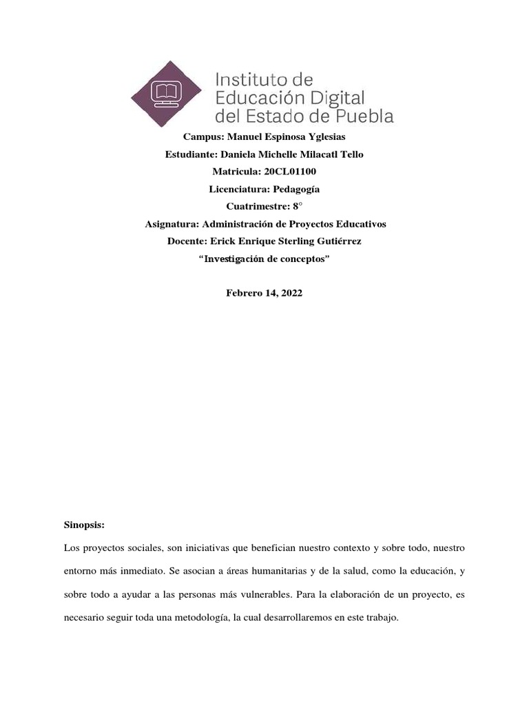 Asignatura: Administración de Proyectos Educativos