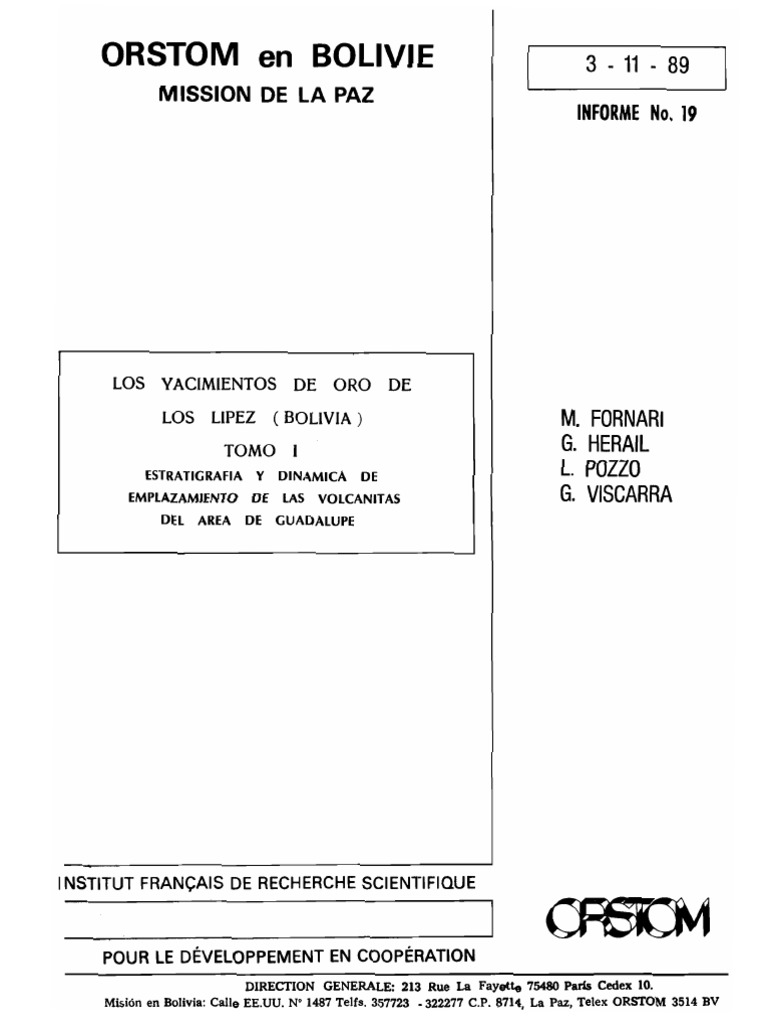 MISION ORSTOM EN BOLIVIA, INFORME N'19 GEOLOGIA DEL AREA DE GUADALUPE