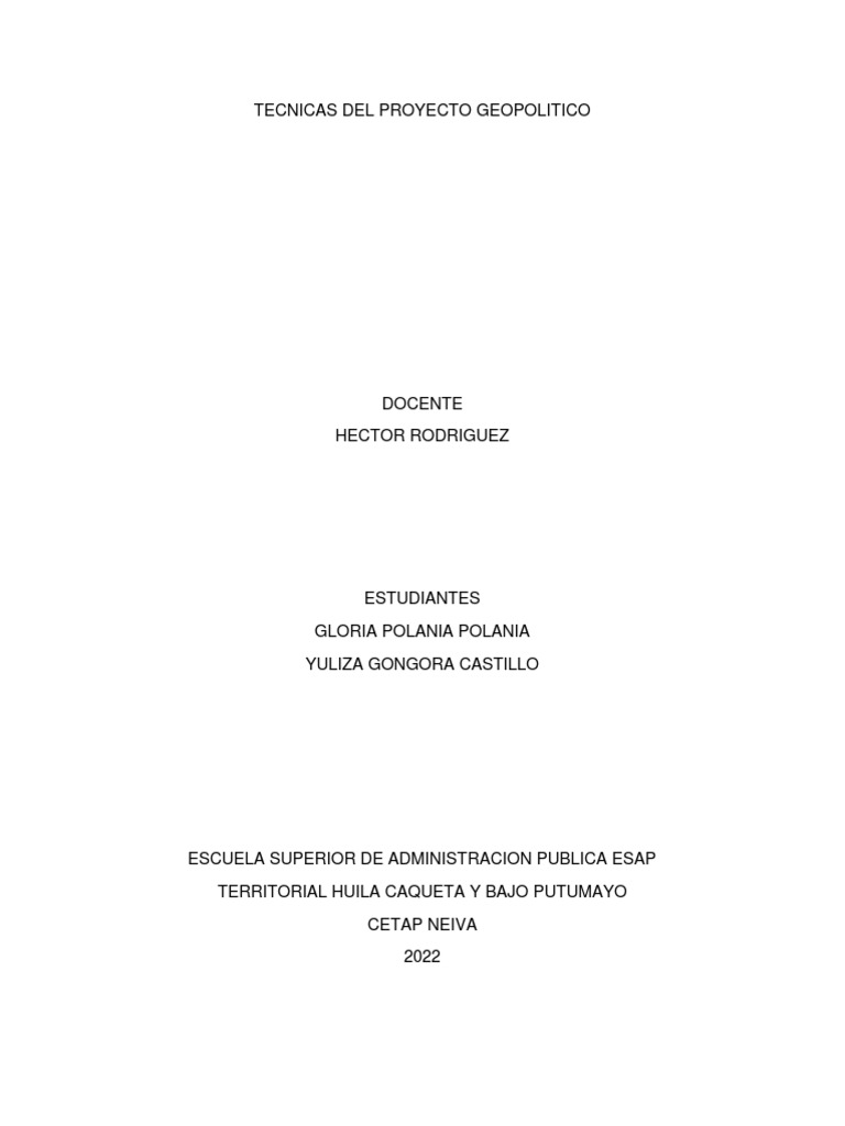 TECNICAS DEL PROYECTO GEOPOLITICO