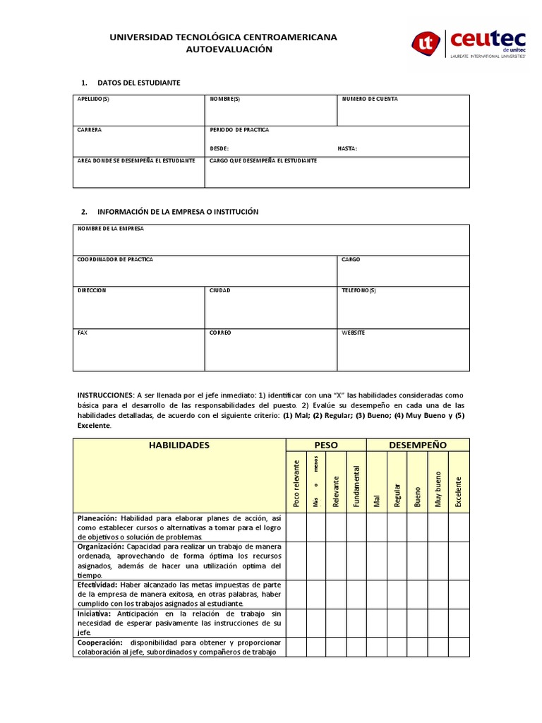 básica para el desarrollo de las responsabilidades del puesto. 2) Evalúe su desempeño en cada una de las