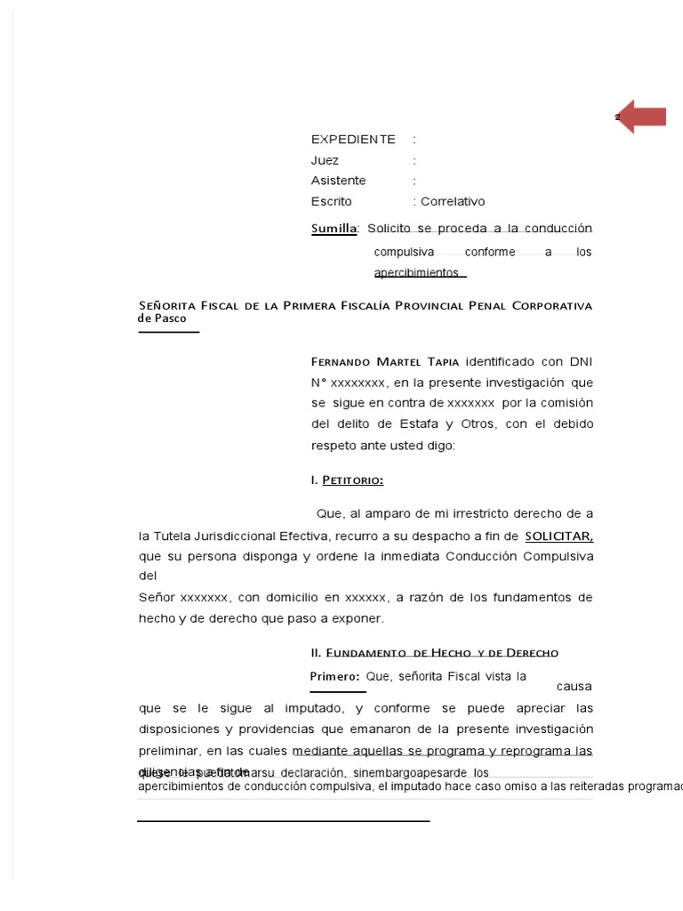 Sumilla: Solicito se proceda a la conducción