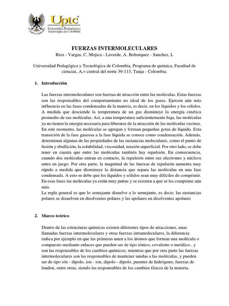 unida, por ejemplo, los enlaces entre los átomos. Las fuerzas intermoleculares