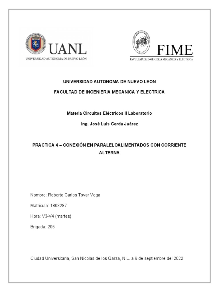 PRACTICA 4 – CONEXIÓN EN PARALELOALIMENTADOS CON CORRIENTE