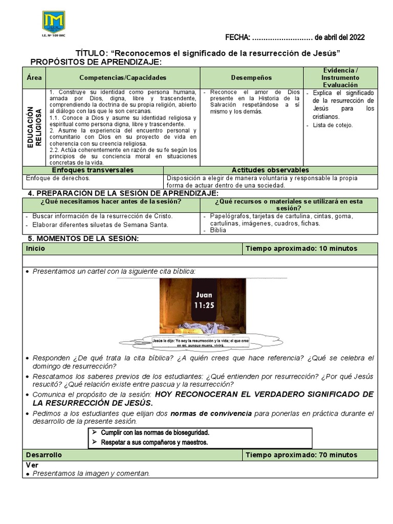 Rescatamos los saberes previos de los estudiantes: ¿Qué entienden por resurrección? ¿Por qué Jesús