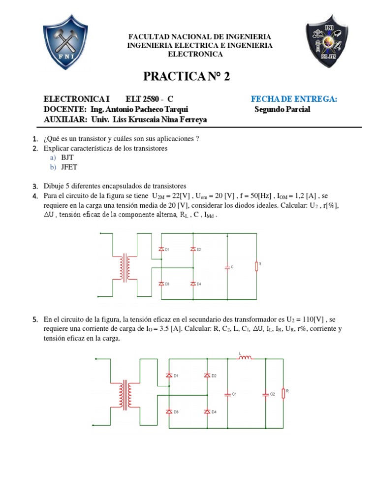 ELECTRONICA I ELT 2580 - C FECHA DE ENTREGA: