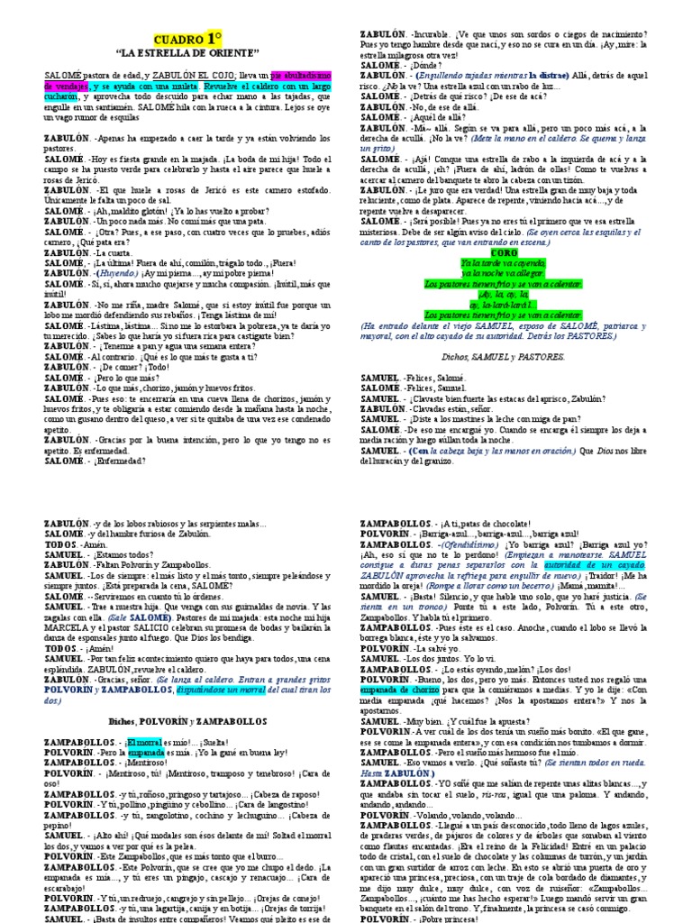 zagalas con ella. (Sale SALOMÉ). Pastores de mi majada: esta noche mi hija Zampabollos. Y habla tú el primero.