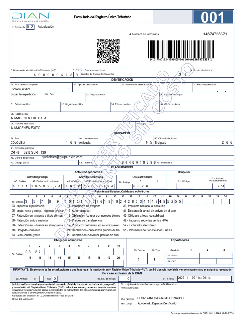 IMPORTANTE: Sin perjuicio de las actualizaciones a que haya lugar, la inscripción en el Registro Único Tributario -RUT-, tendrá vigencia indefinida y en consecuencia no se exigirá su renovación