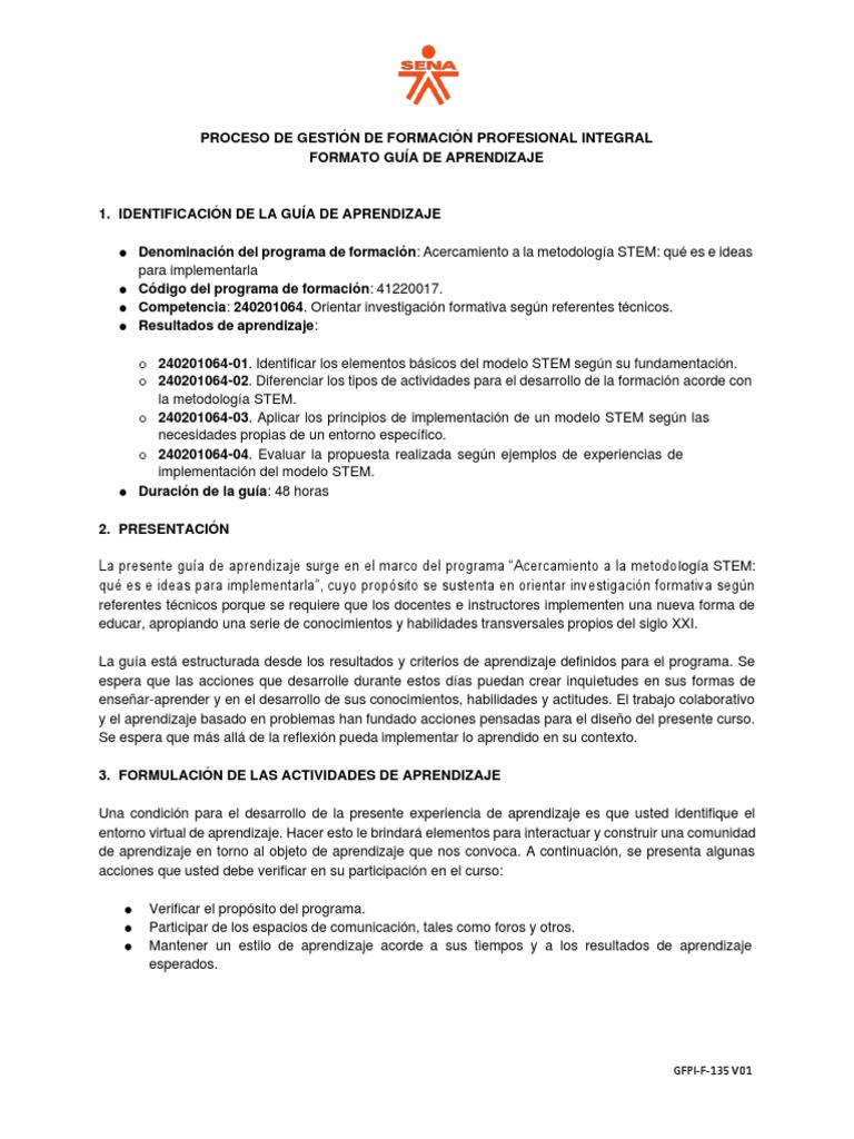La presente guía de aprendizaje surge en el marco del programa “Acercamiento a la metodología STEM: