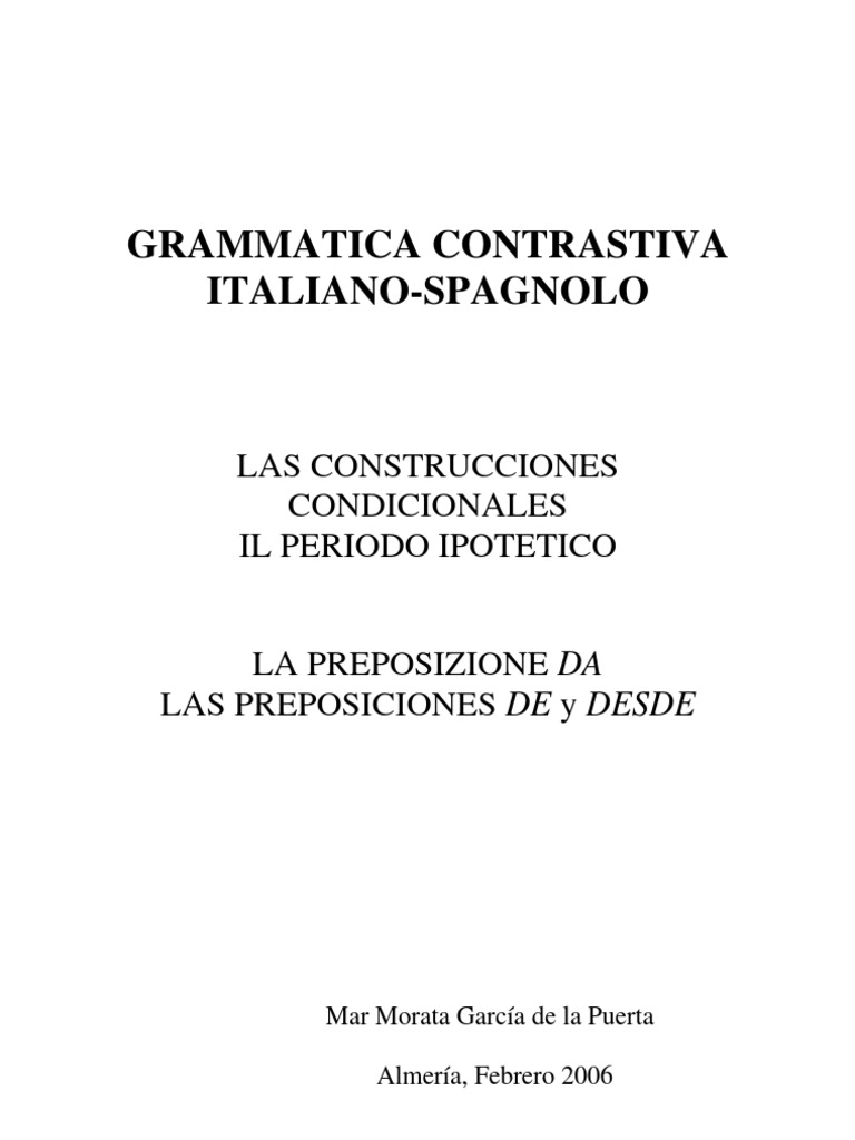 Sobre el valor temporal de la preposicin espaola desde y de la italiana da: apuntes para una didctica del italiano en Espaa Anuario de Estudios Filolgicos de la Universidad de Extremadura, II, 1979: 147-159 PISTONE MAURIZIO, dellimperfetto nelle www.mauriziopistone.it Questioni di grammatica italiana: uso frasi condizionali, sul sito web