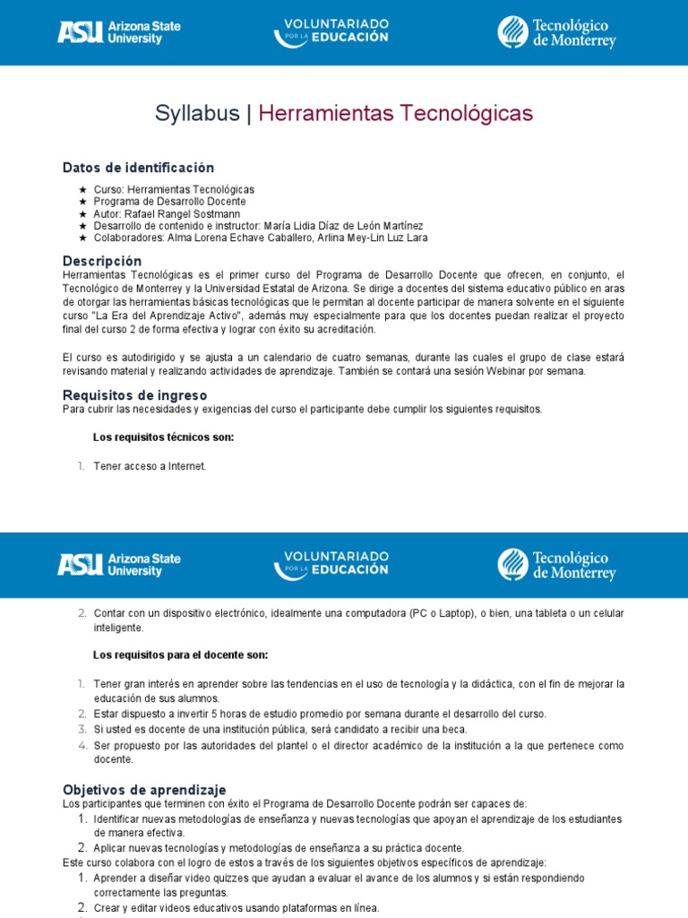 Tecnológico de Monterrey y la Universidad Estatal de Arizona. Se dirige a docentes del sistema educativo público en aras